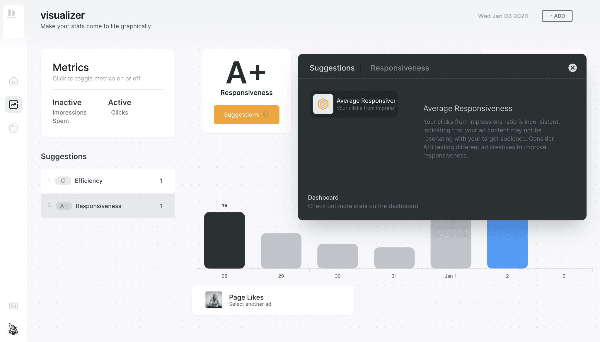 Graphify seamlessly imports your Facebook Ad campaign data into comprehensive dashboards with the click of a button.